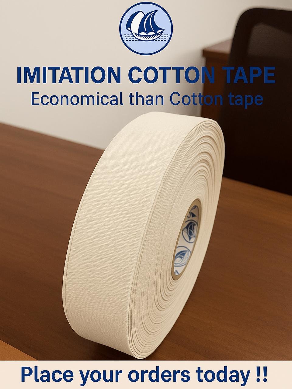 Imitation Cotton Tape is a cost-effective textile tape designed to replicate the look and feel of natural cotton while being manufactured from synthetic or blended fibers. It offers a cotton-like texture with enhanced durability, consistency, and resistance to shrinkage. This makes it an ideal alternative for applications where the appearance of cotton is desired with improved performance and affordability.